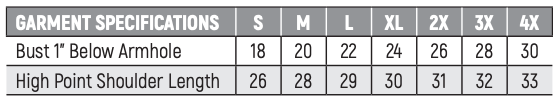 *Sizes S, 3XL and 4XL are special order sizes and will take approximately 3-4 weeks for shipment.